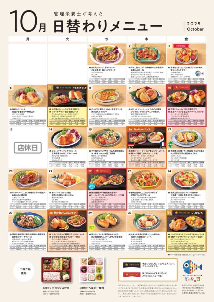 10月日替りメニュー表