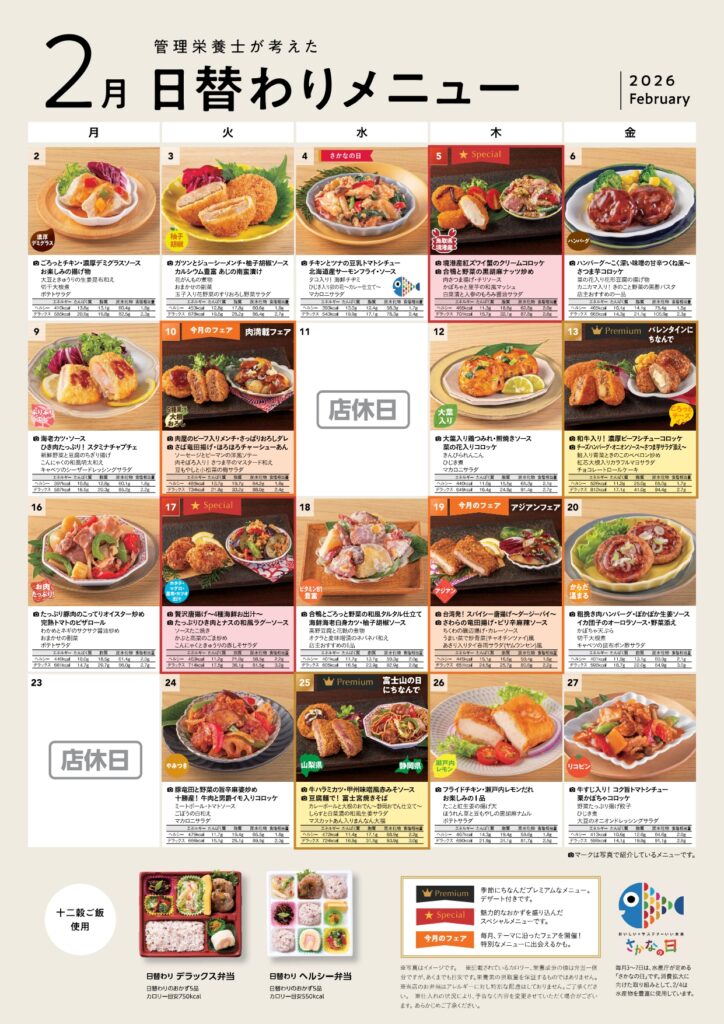 2月日替わりメニュー表